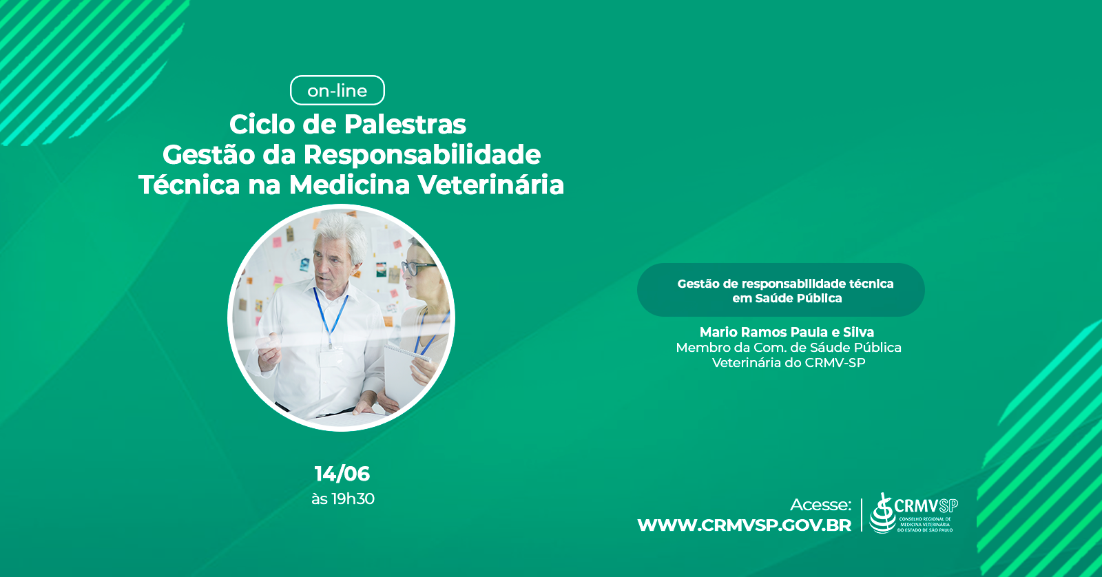 O CRMV-SP, por meio de sua Comissão de Responsabilidade Técnica, realiza uma série de palestras, em formato digital, abordando as principais dúvidas sobre o tema. Em junho, a palestra será com o médico-veterinário Mario Ramos Paula e Silva, membro da Comissão de Saúde Pública Veterinária.