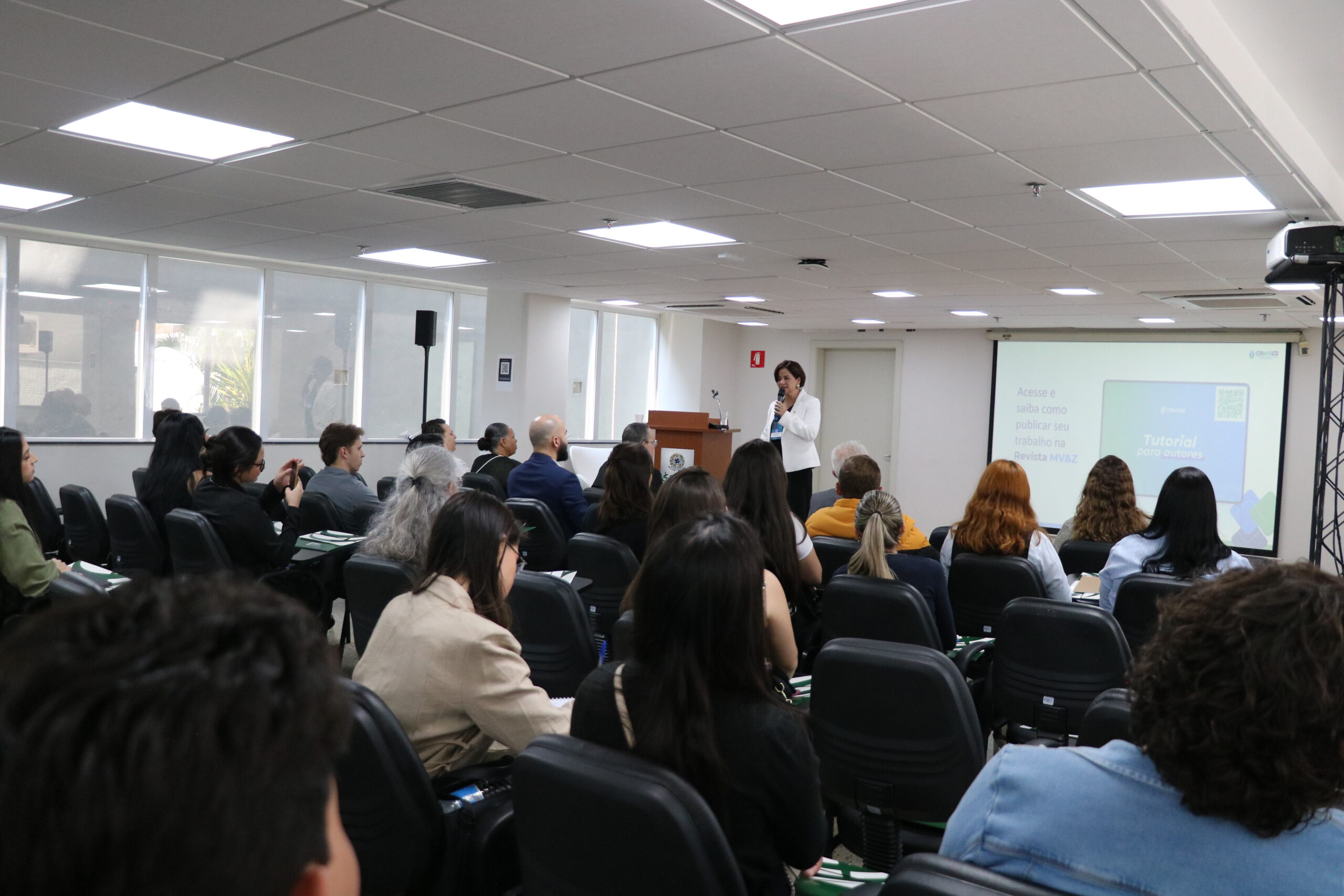 Idealizadora do evento, a presidente da Comissão Editorial e tesoureira do Conselho, Alessandra Marnie Martins Gomes de Castro, que também é pesquisadora, destacou o caráter pioneiro da iniciativa e seu impacto para a Revista MV&Z. Por reconhecer a importância de espaços dedicados à produção científica, a iniciativa fortalece a circulação qualificada do conhecimento dentro do Conselho. “Hoje nós abrimos um espaço novo no Conselho, que vem da construção de um cuidado para fortalecer a circulação qualificada do conhecimento”, disse, ressaltando a importancia do encontro para ampliar o alcance e a relevância da publicação.