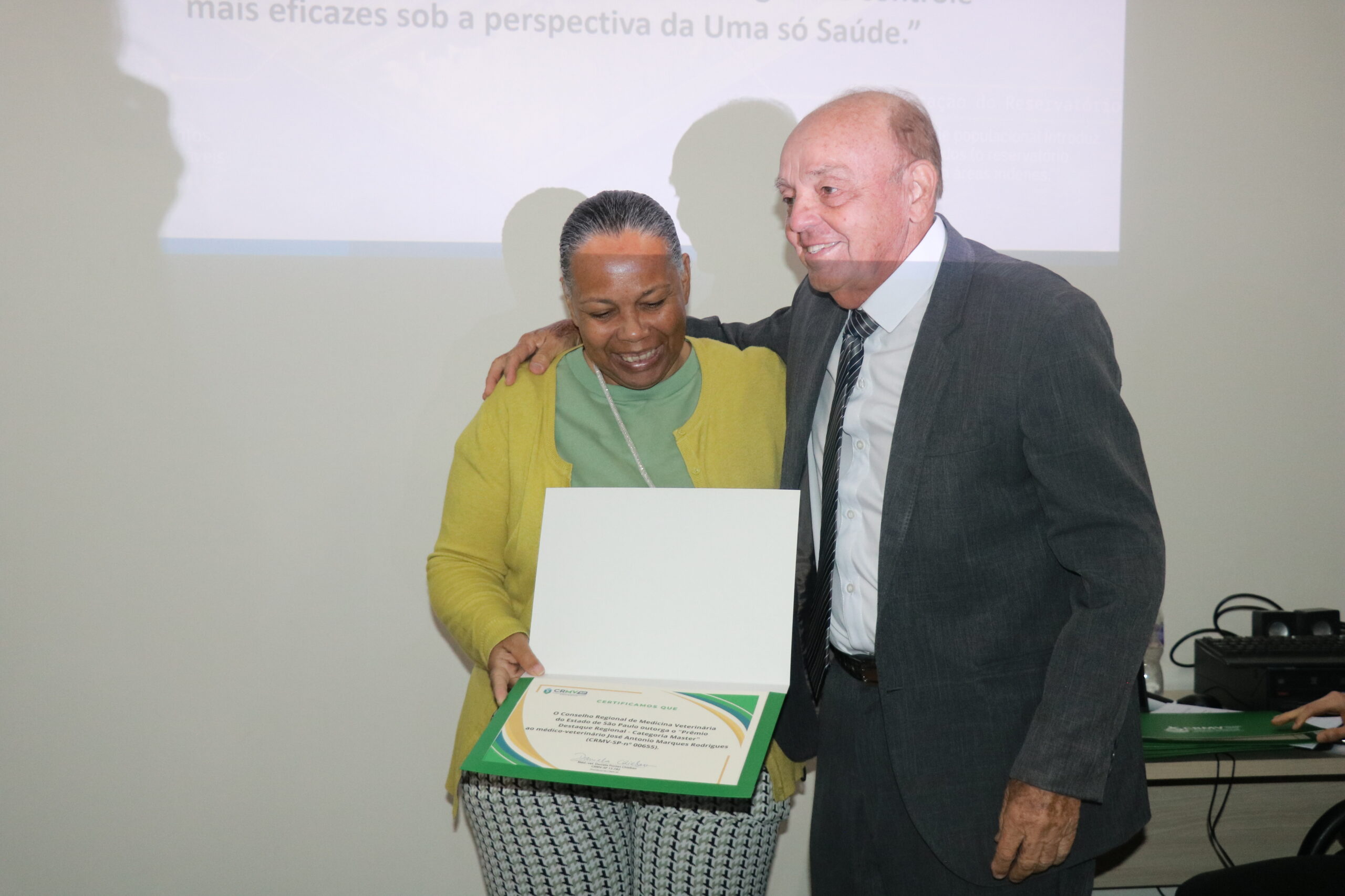 “São mais de 30 anos de atuação na área e quando recebi o convite do CRMV-SP eu fiquei extremamente emocionado. Agradeço por se lembrarem de mim, e à minha família, pela concessão por todos esses anos dedicado à profissão.” (Jose Antonio Marques Rodrigues)