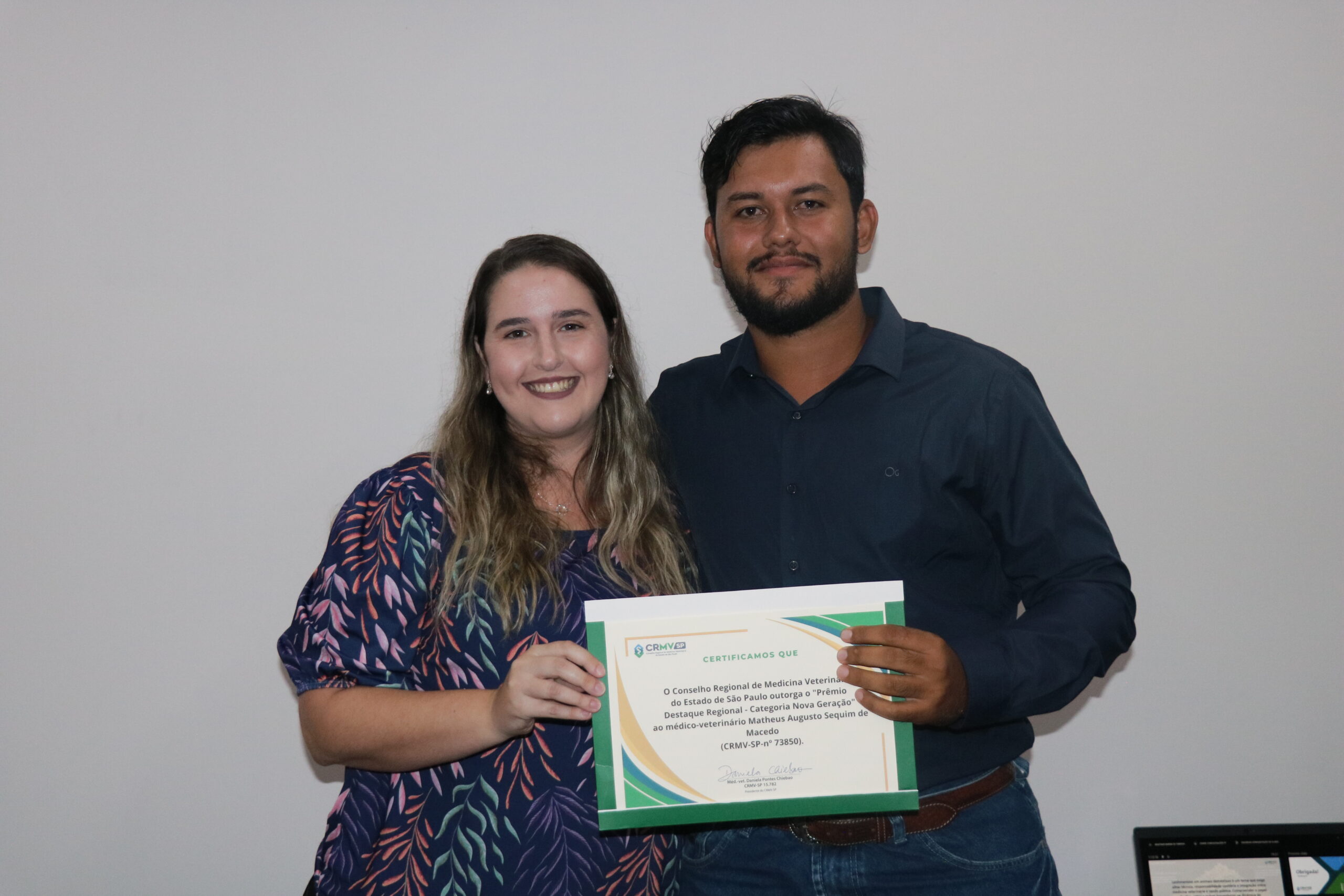 Voltada a profissionais com até cinco anos de formação, a Categoria Nova Geração homenageou os médicos-veterinários Maria Alice Cerqueira Feliciano e Matheus Augusto Sequim de Macedo.